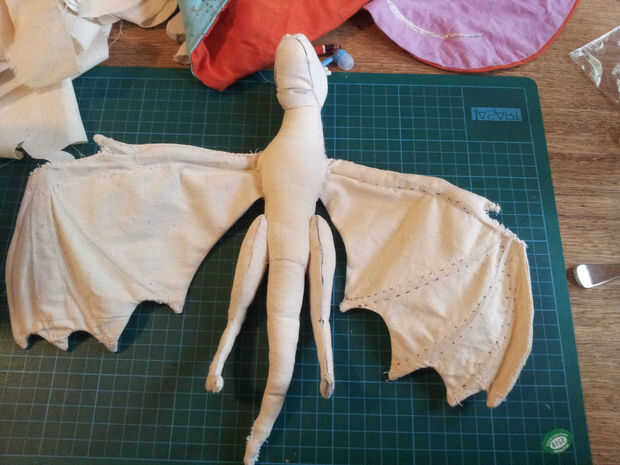 Cuando relleno comience primero con los cuernos y utilice pedacitos muy pequeños de relleno primero. Empujar con un lápiz y haz más grande. Hacer esto con la cola. Asegúrese de que usted rellene todo muy bien para que pueda sostenerse (o lo suficientemente cerca). Coser las lagunas cerradas.