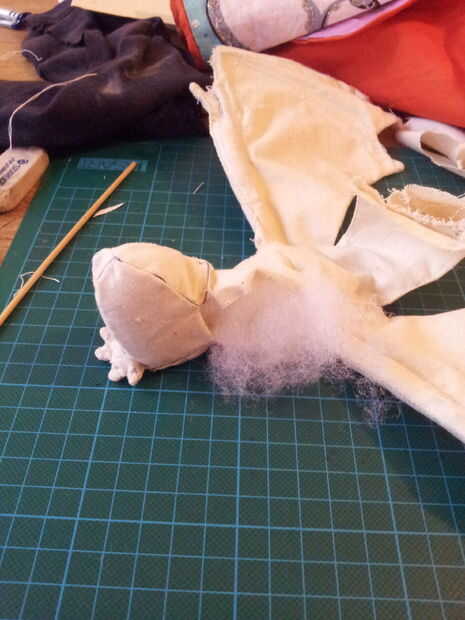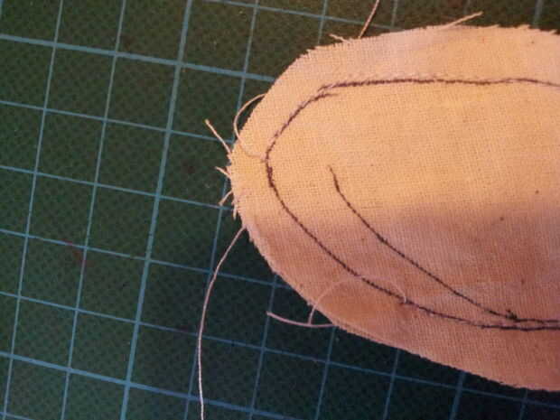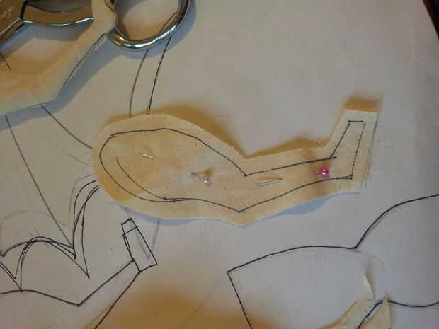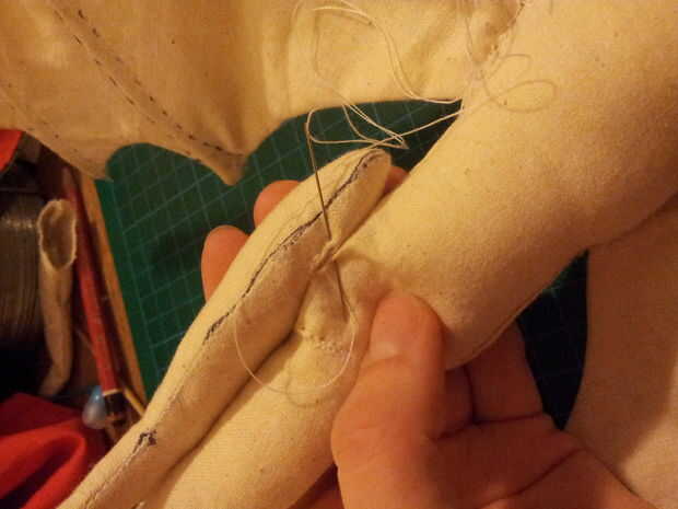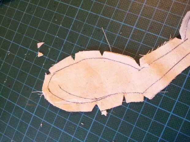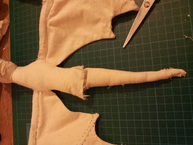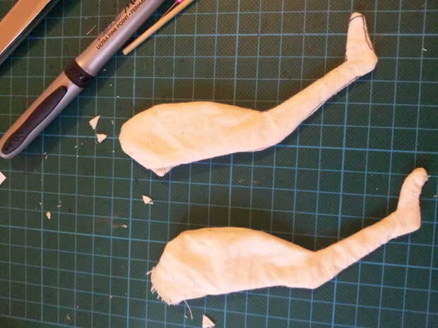 Las patas son bastante fáciles. Simplemente coser alrededor del patrón en la máquina, dejando un espacio para rellenar. Corte muescas como yo lo hice. Vuelta adentro hacia fuera es un poco de dolor pero sea paciente. Encontré Si engancha a un poco tela con un alfiler luego se tira suavemente ayudado, pero tenga cuidado de no extraer nada.
