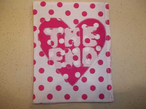 Coser la portada a la Página 1, página 2 a la página 3 y página 4 a la espalda. Coser las páginas derecha uno frente al otro y recuerden dejar un espacio pulg 2 o 3 para el torneado. Cortar las esquinas y girar a la derecha de páginas hacia fuera. Ahora tienes 3 piezas, ponerlos juntos portada, media página y página final. Coser el lado izquierdo, creando el libro.