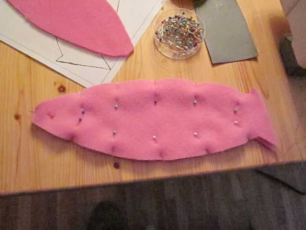 Junte los pedazos de oreja en grupos de 2 con el lado esponjoso hacia uno con el otro y luego pin juntos alrededor de los bordes.