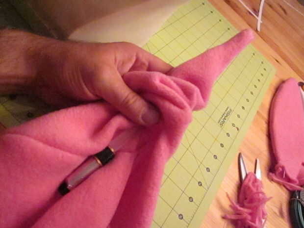 Utilizando una aguja de hacer punto girar a la derecha de la correa de barbilla hacia fuera entonces completar el rodaje de la chimenea.