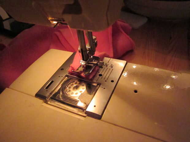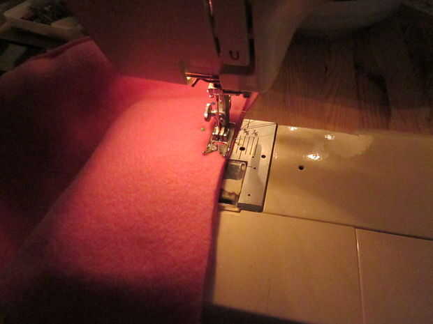 Utilizando el borde del prensatelas como guía, coser a lo largo de todo el filo de la chimenea.