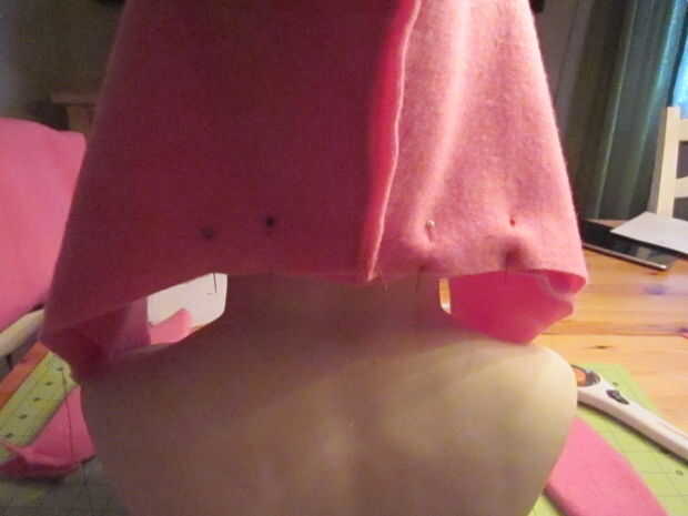 Para ajustar el ajuste, ponga una sola capa de la chimenea en el modelo y la parte delantera a lo largo de la costura y la parte posterior a lo largo de la costura. Fijando el frente traerá el pico y fijar la parte posterior se tensará la chimenea.