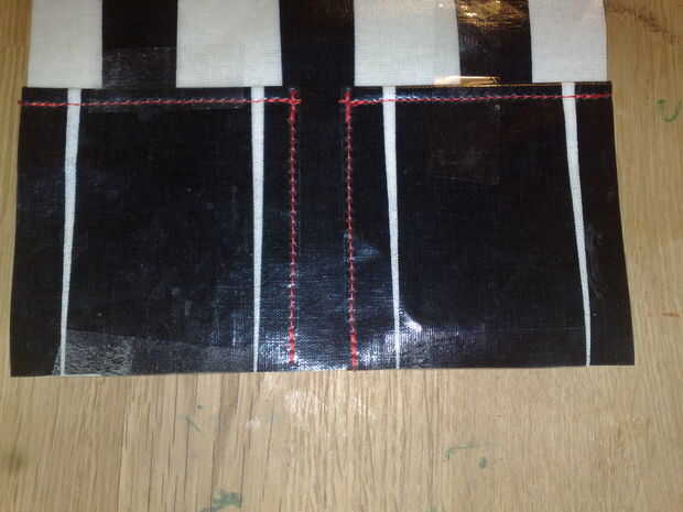 Alojarte en los bolsillos para las tarjetas de plástico tienes que hacer los bolsillos apretados. Hice una plantilla de bolsillo en papel y puso una tarjeta de plástico y había marcado a los lados de la tarjeta en el papel. Usé unas puntadas rectas (cosa un poco hacia atrás y hacia adelante para que sea fuerte) para apretar los bolsillos.