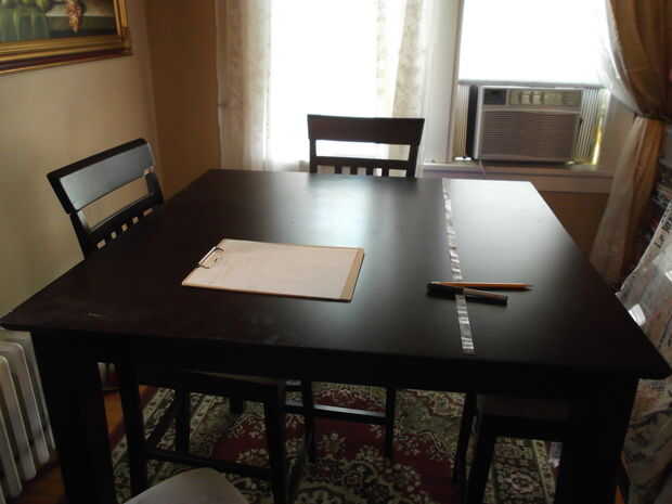 La idea de la mesa vino solamente después que había recibido la madera que fue dada a mi padre por un amigo madera pensó debe ser quemada. Mi papá se dio cuenta de la mayor parte era madera de calidad que debe reutilizar algo más de inflamación. Así