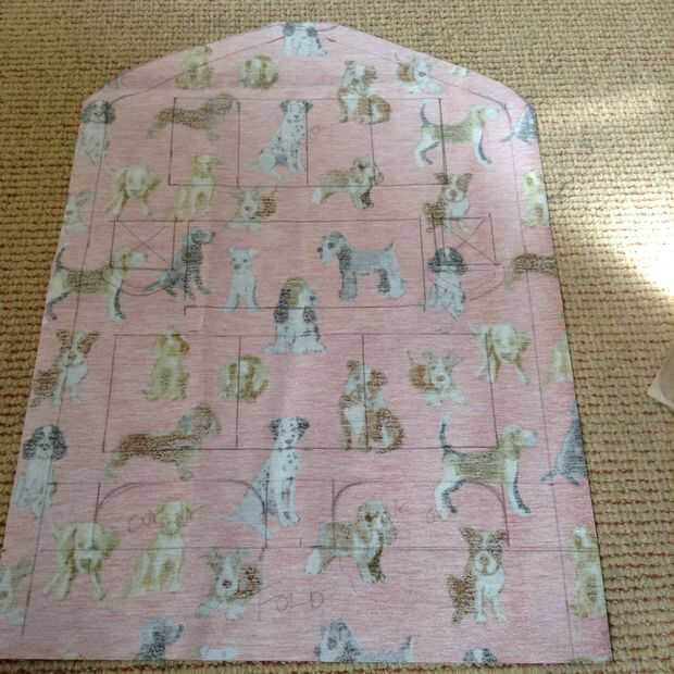 Medirlo todo y dibujarlo hacia fuera en la parte posterior de la pieza principal. Recuerde incluir el margen de costura y una agradable vuelta grande hasta en la parte inferior.