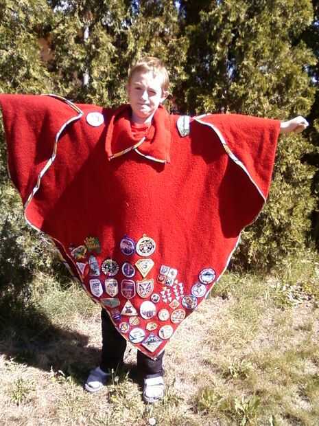Futuro: Hace ya unos meses mi hijo se trasladó hasta de Webelos boyscout y he tomado el tiempo para su uniforme azul de la tira y rellenar su poncho. El frente es el escaparate de Escultismo y es el reverso de las cosas que él hace fuera del Movimiento Scout.