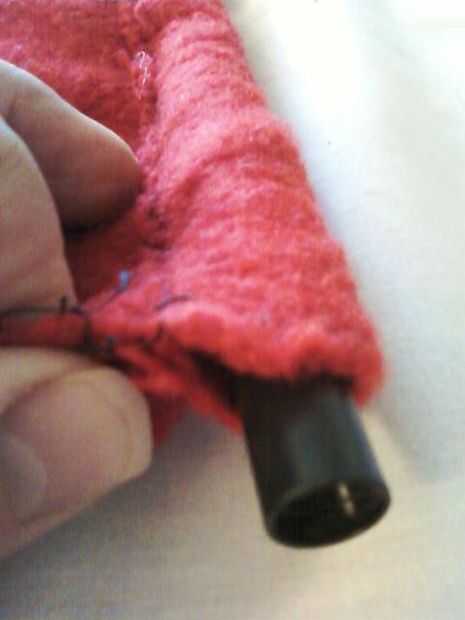 b. y puntada recta cosen un tubo de diámetro de ½" a lo largo de uno de los 30" lados del collar.