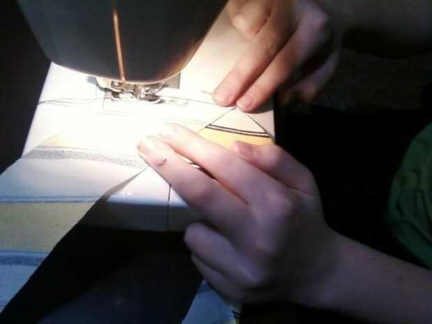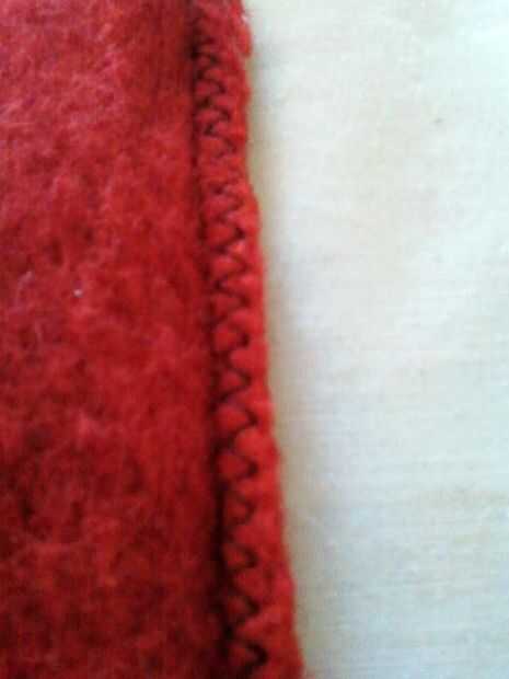 a. coser un dobladillo de puntada apretada pequeño (1/4" zig-zag) en todos los bordes cortados de la lana para controlar el desgaste durante el montaje.