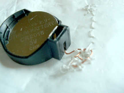 +++ La puntada una cola del sensor a la cola positiva de LED y la cola de otro sensor en el extremo positivo de la batería / potencia.