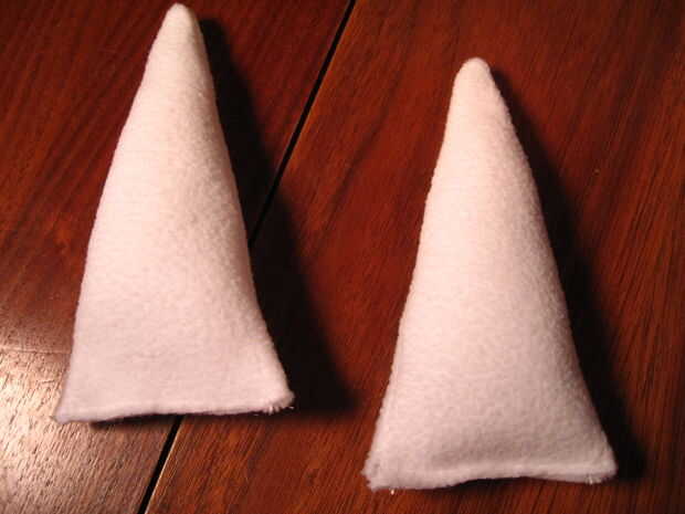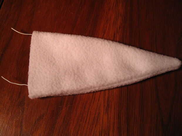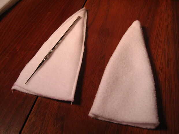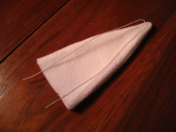 Una vez que ambos oídos son cableados y relleno, cosa en la botttoms como cerca del borde como le sea posible y sobre los cables. No te preocupes de pespuntes. :)