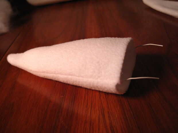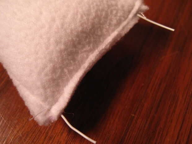 Entonces a cosas manteniendo los cables en su lugar. Cosas bastante bien, pero no tanto que comienza a mirar alrededor. Deje la parte inferior un poco menos rellena por lo que se puede coser.