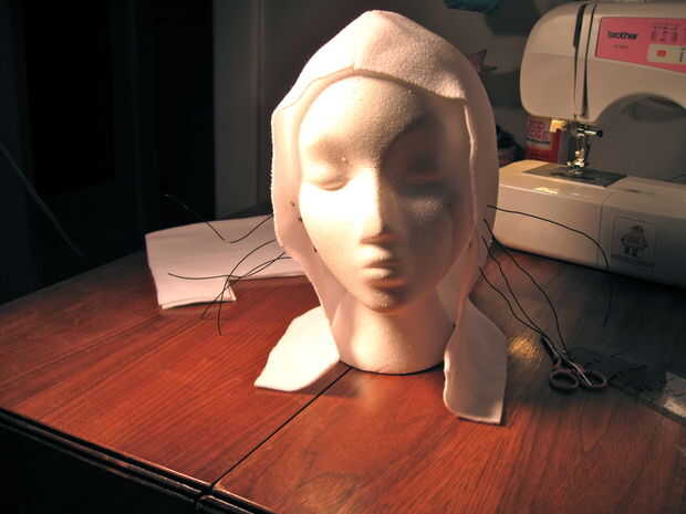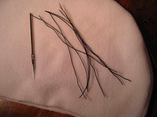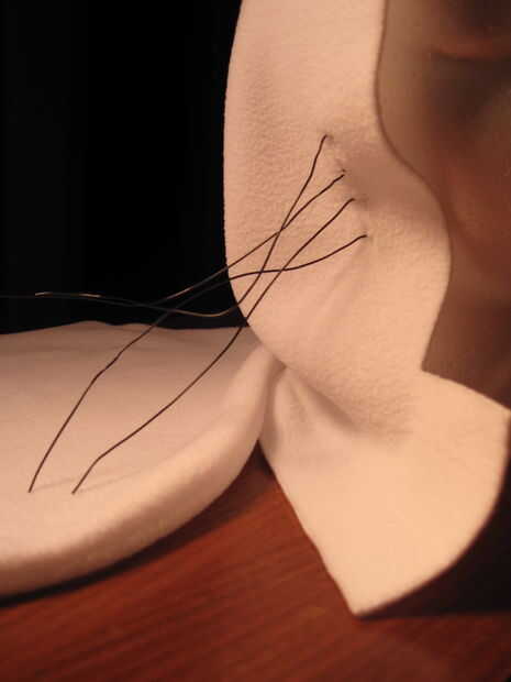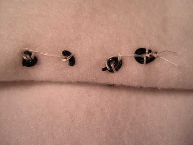 Ahora, tomar una aguja y un hilo blanco y garantizar estos lazos en el interior del sombrero para que en posición plana. Esto hará que tus bigotes permanecer en el lugar y ser más rígido. ¡ Hurra!