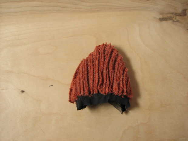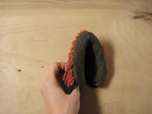 Prender el forro de tela a la oreja con el lado derecho de la guarnición de la piel. Si lo desea, usted puede emparedado en una tira adicional de la piel punto a lo largo de la costura por lo que está colgando hacia fuera del borde. Esto le dará más largos penachos de la piel alrededor de la oreja. (Lo hice pero solamente por el lado redondeado de la oreja).