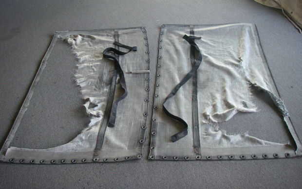 Deslice las dos grandes piezas del marco. Tratar de mantenerlos en una sola pieza si se puede. El paño se verá terrible, pero sólo la superficie superior se dispara. Los bordes tienen varias capas por lo que va a estar bien.