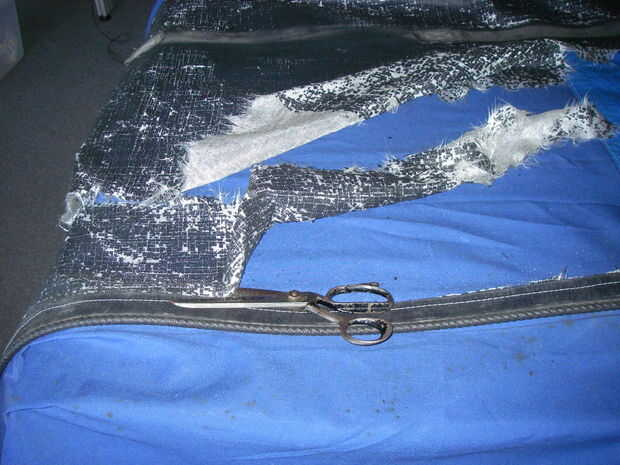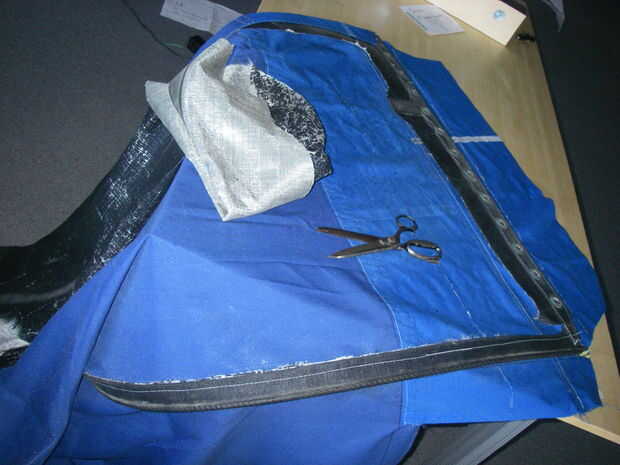 Observe también cómo he cortado las esquinas de la tela nueva.