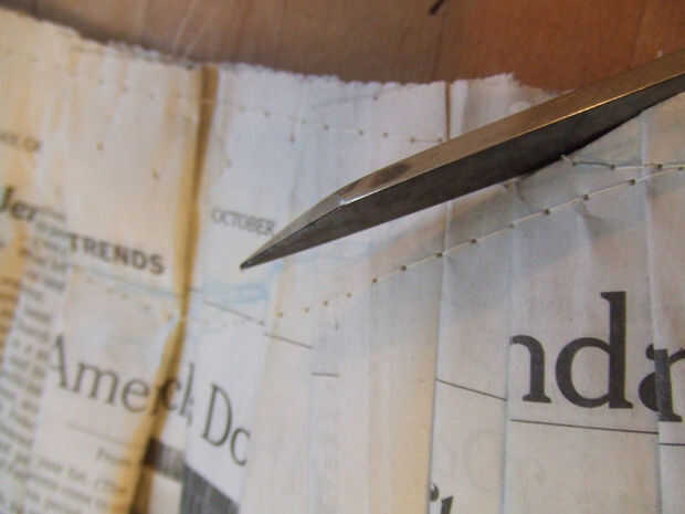 -Cuidadosamente cortado a lo largo de la línea de lápiz, asegurándose de no cortar a través de la última línea de la costura le hizo.