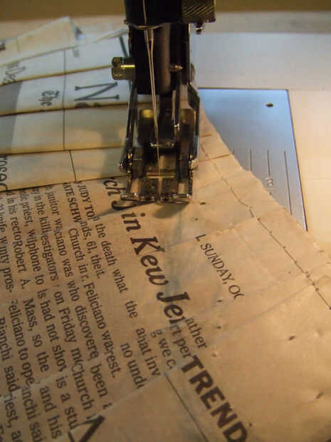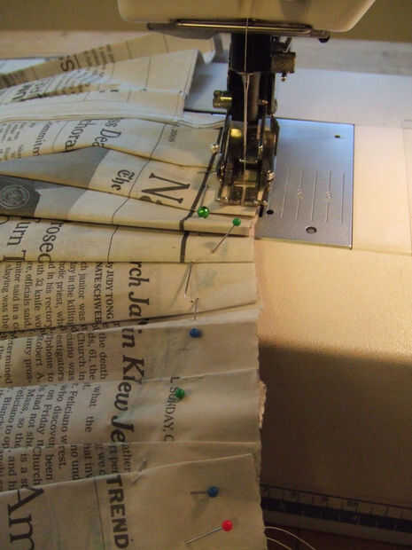 -Coser otra vez a lo largo de la línea del cuello en 1/4 de pulgada de la parte superior y en 1/8 de pulgada de la parte superior, para asegurarse de que los pliegues se mantienen Unidas.