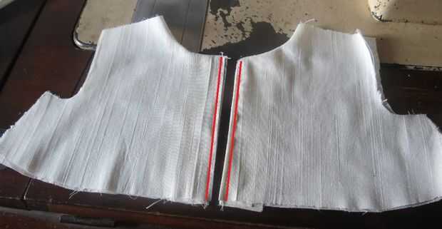 Seguir instrucciones para la blusa espalda, hacia el lado correcto y coser a lo largo de la línea roja muestra.