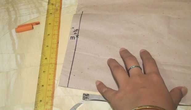 Deja ½" sobre el papel que se va a dibujar el bloque. Y 3 ¾" y toma abajo ½" y marca un punto de la derecha abajo. Únete a AB como se muestra en la foto.