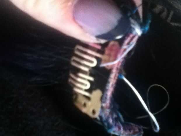 Después de coser el primer orificio dos o tres veces, pasar por los dientes de la pinza en el centro, empujando la aguja a través de la trama y repetir dos veces o tres veces. Cuando estás cómodo es seguro mover hasta el último agujero. Repetir las mismas acciones. Cuando su cómodo con la seguridad del último agujero, creo que es seguro para ir a través de cada agujero una vez más. Para hacer esto, volver a hacer otro bucle en el medio y a través del primer agujero.