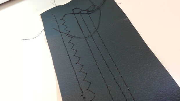 Antes de comenzar su proyecto, Compruebe la configuración de la máquina para asegurarse de que el patrón de costura es la que desea utilizar. Me decidí por una puntada recta con una longitud de puntada moderadamente larga. Con el vinilo, no quiero una corta longitud de la puntada ya que puede debilitar el material.