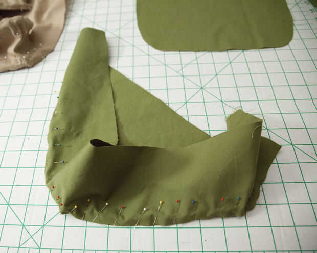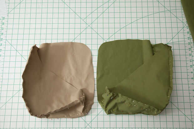 El lado derecho de la tela es la parte bonita, lo verá. El reverso es el lado feo, que será atrapado con los márgenes entre el armazón y el forro y no ser visto. Esta parte es complicada, así que lea cuidadosamente. De la cáscara, se pin derecho lados juntos, y la cáscara se conseguir adentro hacia fuera. Sin embargo, para la guarnición, se pin derecho lados juntos, pero no se obtener resultó al revés, porque el interior de la bolsa es el lado bonito. Esto significa para el shell, el lado derecho es el exterior de la bolsa, pero para la guarnición, la derecha es el interior de la bolsa. Las fotos y las notas le ayudará mucho en este paso.