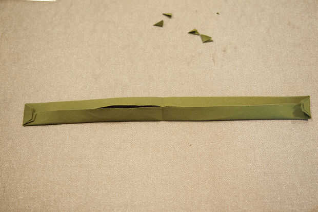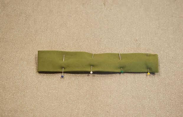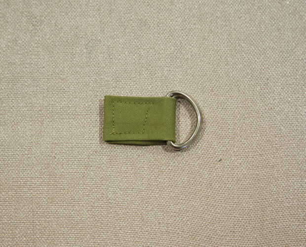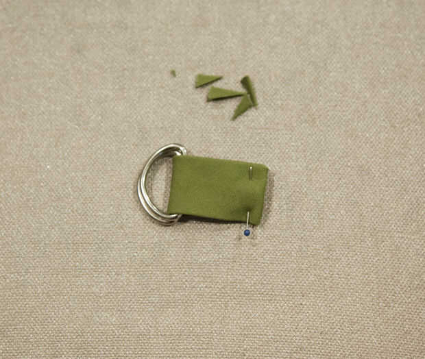 Cortar una tira de 2 x 4" para asegurar sus anillos en D. Doble 1/2" hacia el interior de cada borde y presione. Recortar las esquinas. A continuación, bucle a través de anillos en D y alinee los extremos para que se queden con una tira de 1.5" de largo. PIN y coser alrededor de una plaza para garantizar. Tenga cuidado de que tus anillos en D son claros del prensatelas; ayuda si usted comienza la costura en el lado de los anillos en D. Coser la pestaña del anillo D en la parte superior "tapa" de la bolsa.