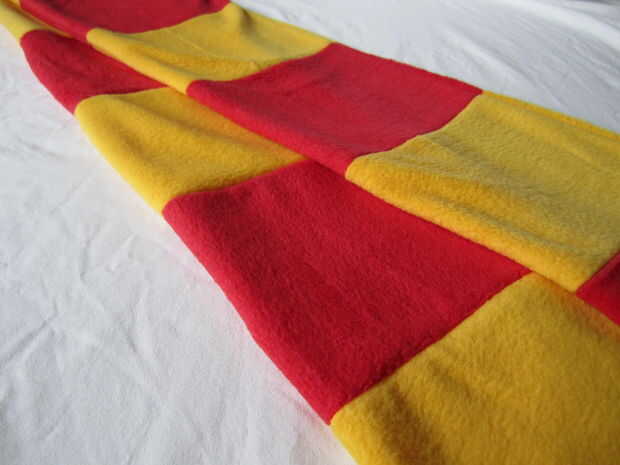 hacer una bufanda con flecos o tasseled desde cero en casa usando habilidades y muy pocas herramientas de costura básica.  Las dimensiones no son críticas.  Siempre y cuando la tela es bastante suave y ligeramente tejida, la elección no es crítico.La
