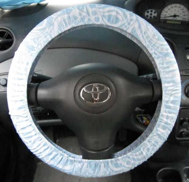 el interior de mi coche es negro y estoy seguro de que te puedes imaginar lo caliente vinilo negro en el sol de verano!  Mi primer pensamiento fue para manejar con guantes, pero un volante tapa parecía una idea mejor... y es una práctica aplicación elástica para aquellos de ustedes que deseen hacer su propio traje de baño o ropa interior.  La técnica es la misma pero los errores son tan importante.
