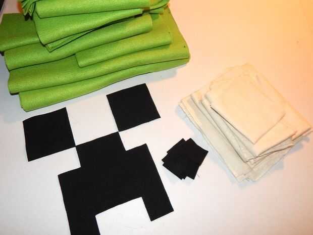 4. a mano o máquina apliques negro fieltro ojos y la boca en un 17 "x 17" verde paño grueso y suave pieza
