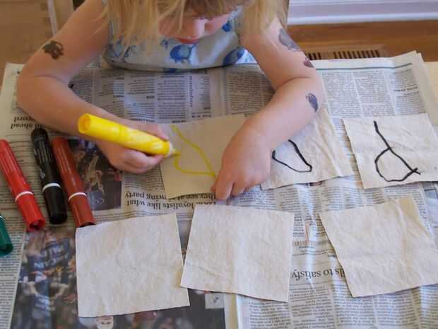 (También dejó mi hija decorar la tela para hacer bloques para su primo, este paso es opcional ;)