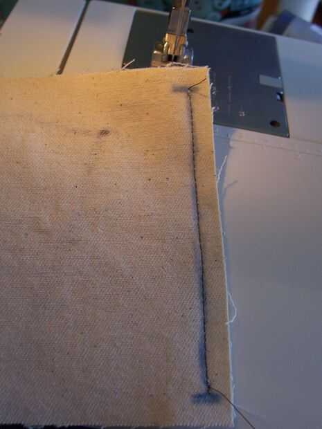 OK, así que para hacer esto, acumula tus piezas de tela buena lados junto con los bordes alineados. Se puede ver en la foto que saqué una línea para mostrar exactamente donde tenía que coser (esto es sólo por el tutorial, no necesitas hacer esto). La aguja 1/4 de pulgada en el borde de la planta y tomar unas puntadas. Nuevo punto para trabar los hilos y continuar cosiendo por todo el proyecto.