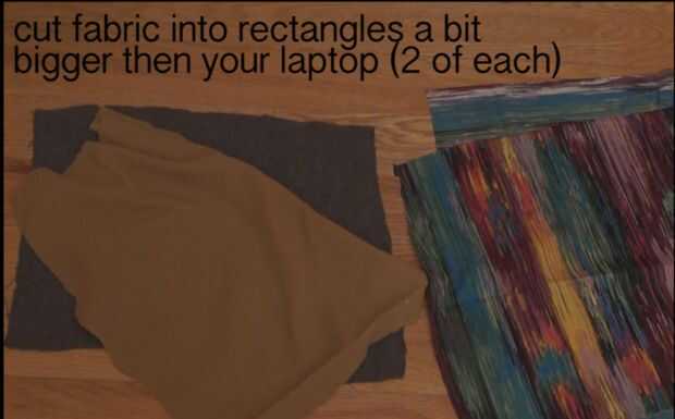 Cortar cada una de las telas en 2 rectángulos un poco más grande entonces su ordenador portátil (4 rectángulos en total).