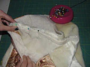 Coincide con los dos extremos de pelaje corto juntos, pin, asegurándose de que no se captura su guarnición. Esto al principio parece torpe. Se refieren a la fotografía para asegurarse de que está haciendo este paso correctamente. Puntada.