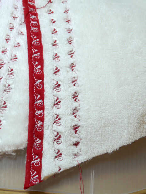 Bordar como te gusta la capa superior del paño grueso y suave y recortar el borde recto con la cinta.