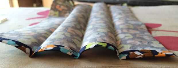 Ahora debe tener un pedazo de tela de 4cm de ancho y con los bordes oculto. Cuando abría debería mirar un poco como un libro.
