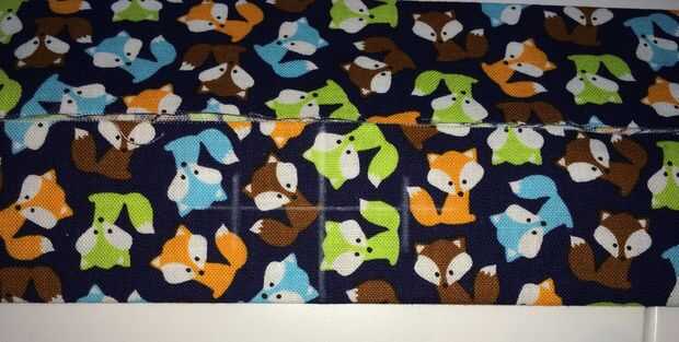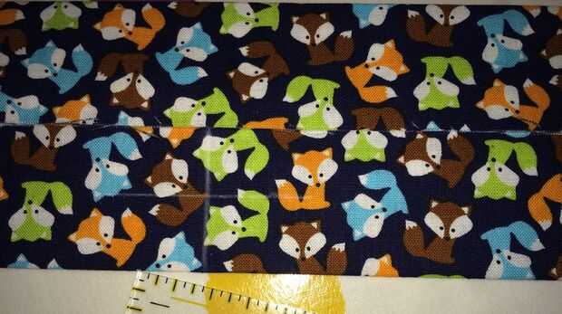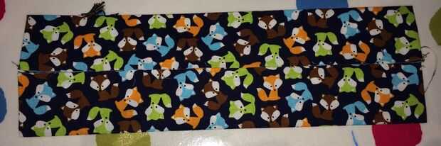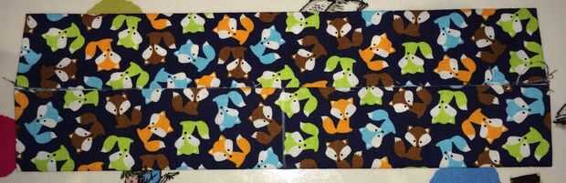 Medir 1,5 cm en cada dirección desde la línea de largo de centro y dibuje una línea. Ahora debe tener marcas en una mitad de la tira de tela que parece--|-|-|--.