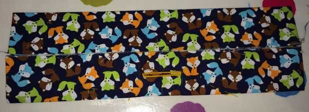 Coser un ojal de 3cm entre las 2 líneas del final. Esto no debería ser paralelo a los bordes laterales de la tira, a lo ancho.