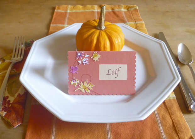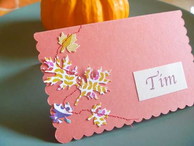 Para este arte fácil, combiné hojas y papel. Aquí es todo lo que necesitas para hacer tarjetas de lugar encantador para su mesa.