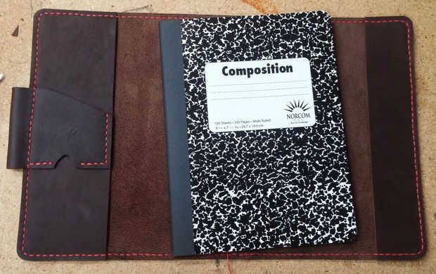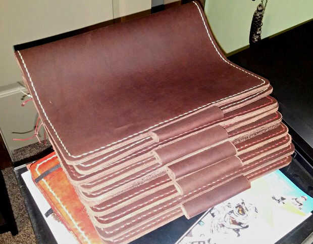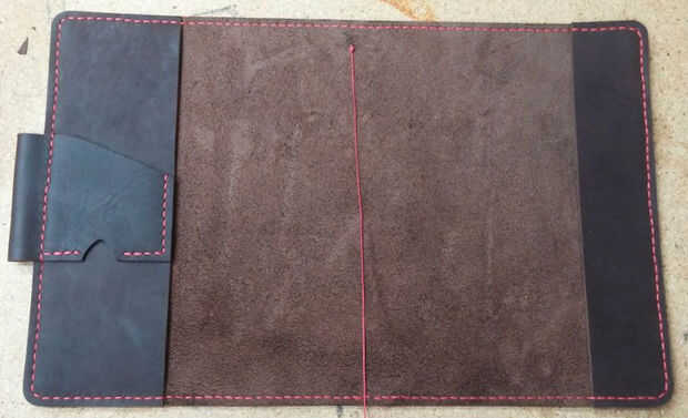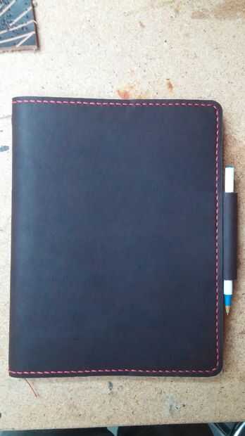 Esta cubierta se produjo a través de un amigo mío que es propietaria de una agencia de seguros y quería conseguir unas cubiertas de cuero agradable para los cuadernos de sus agentes a utilizar que son delante de los clientes. Esbozado la idea, hace un par de prototipos y se asentaron en este diseño.