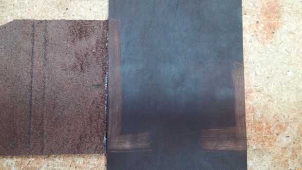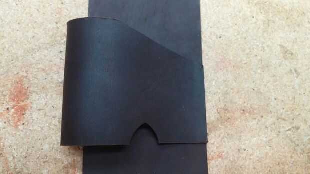 Doble sobre el titular de la tarjeta de biz y alinee los bordes derecho. Usar un punzón para marcar las líneas donde el pegamento va a ir. Si yo estoy pegado en el lado brillante de aceite bronceada piel, raspe lo un poco con un papel de lija de 100 grano antes de poner el pegamento.