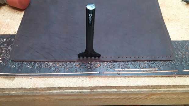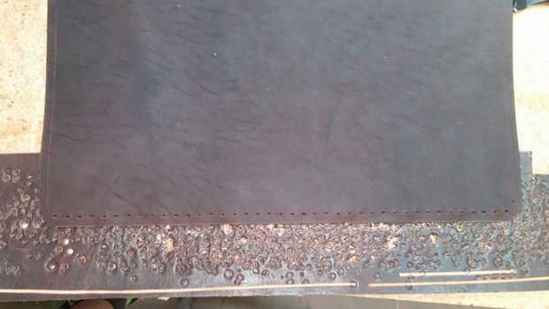 Antes de pegar la tapa frontal de la tapa principal, pre-perforar los agujeros de costuras en el borde exterior. Esto hará que perforando los agujeros a través del titular de la tarjeta de la pluma sostenedor/biz y tapa frontal más fácil.