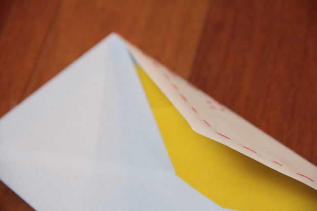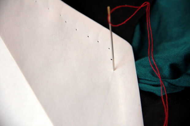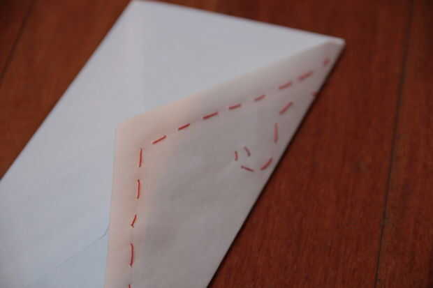Cosiendo un poco en la envolvente con hilo y aguja simple, puede convertir su envolvente de negocios tamaño carta en una pieza muy especial de correo.
