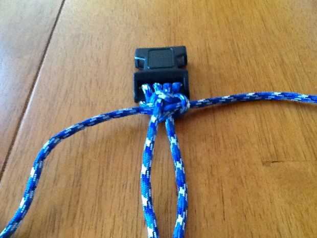 Paso 1: Usted necesitará unos diez pies de cable Quemar dos extremos de paracord juntos colores lo que le gustaríaPaso 2: Agregar hebillas Tomar un extremo de la paracord y poner la hebilla luego tome el extremo y tire hacia abajo en forma de bucle y