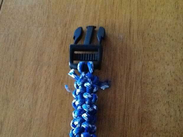 Paso 1: Usted necesitará unos diez pies de cable Quemar dos extremos de paracord juntos colores lo que le gustaríaPaso 2: Agregar hebillas Tomar un extremo de la paracord y poner la hebilla luego tome el extremo y tire hacia abajo en forma de bucle y