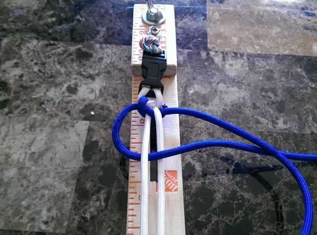 2. Deslice la cuerda izquierda debajo de dos cables de núcleo, entonces sobre el lazo del cordón derecho.