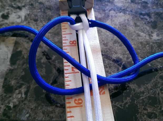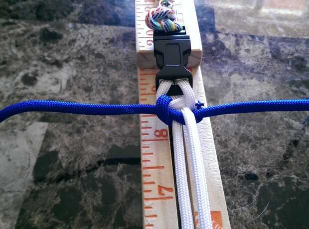 4. Deslice la cuerda izquierda debajo de la cuerda de centro izquierda, luego con el cable de base derecha, entonces bajo el cordón derecho.