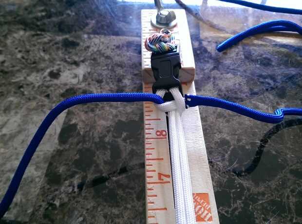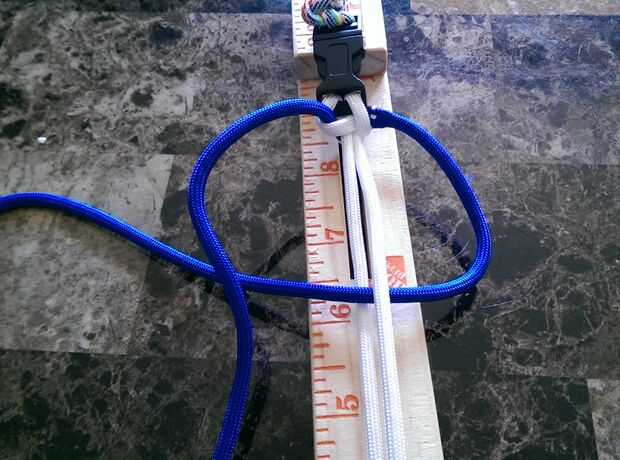 1. Deslice el cordón derecho debajo de la cuerda de la base derecha, luego con el cable de la base izquierda, entonces bajo la cuerda izquierda.