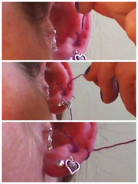 Cosido de la oreja, pendiente de la alternativa (6 / 9 paso)